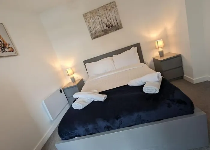 Lovely 1Br Penthouse Near Mcr Stadiums ligger i Old Trafford distriktet i Manchester og 15 km fra Manchester flyplassen. Denne 55 m² store leiligheten tilbyr direkte tilgang til Masjid-E-Hidayah og består av 1 soverom.